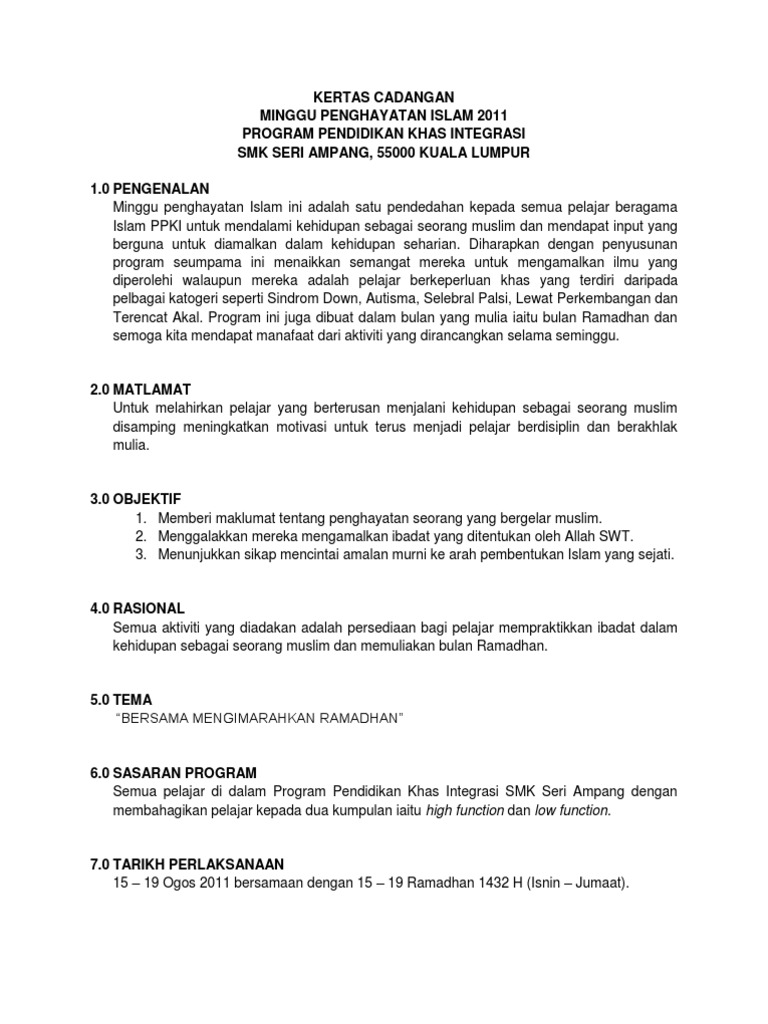 Kertas Cadangan Program Minggu Panitia Pendidikan Islam Pdf